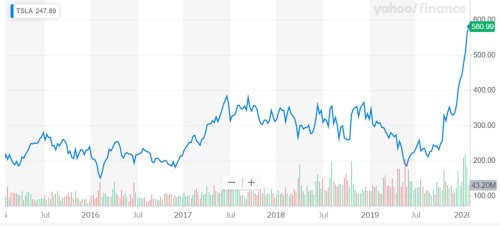 1月29日の米株式市場が閉じた後、テスラは19年10~12月期の決算を発表した。売上高が前年同期比2%増の73億8400万ドル、純利益が同25%減の1億500万ドルで、2四半期連続の黒字を達成した。これも市場は好感。同日の時間外取引では一時同日終値の11%高を付け、初めて600ドル台を達成した。